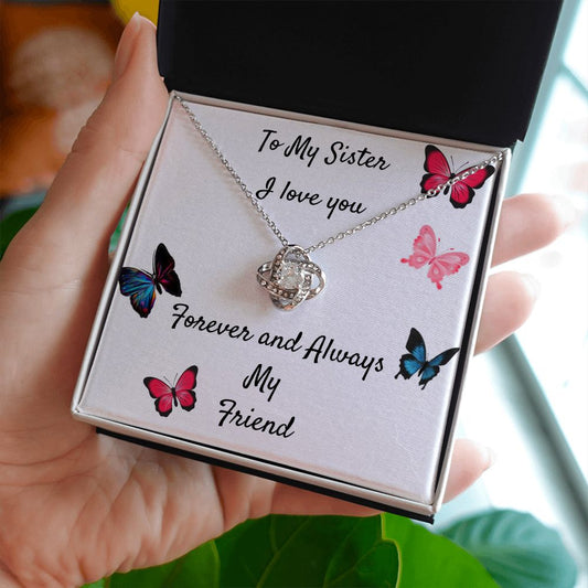Sister Love Knot Necklace ( Yellow and White Gold Finish )